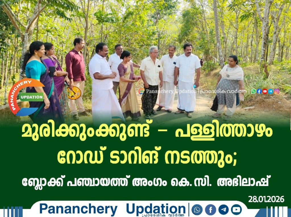മുരിക്കുംക്കുണ്ട് – പള്ളിത്താഴം റോഡ് ടാറിങ് നടത്തും; ബ്ലോക്ക് പഞ്ചായത്ത് അംഗം കെ.സി. അഭിലാഷ്