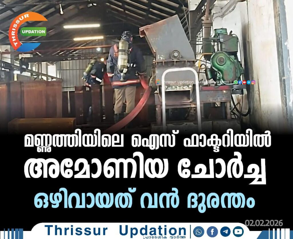 മണ്ണുത്തിയിലെ ഐസ് ഫാക്ടറിയില് അമോണിയ ചോര്ച്ച; ഒഴിവായത് വൻ ദുരന്തം