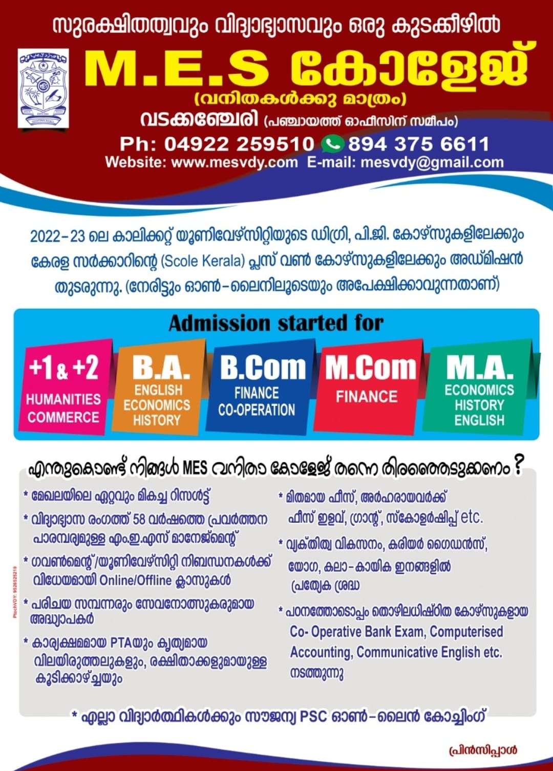 2022-23 ലെ കാലിക്കറ്റ് യൂണിവേഴ്സിറ്റിയുടെ ഡിഗ്രി, പി.ജി. കോഴ്സുകളിലേക്കും കേരള സർക്കാറിന്റെ (Scole Kerala) പ്ലസ് വൺ കോഴ്സുകളിലേക്കും അഡ്മിഷൻ തുടരുന്നു. (നേരിട്ടും ഓൺ-ലൈനിലൂടെയും അപേക്ഷിക്കാവുന്നതാണ്)