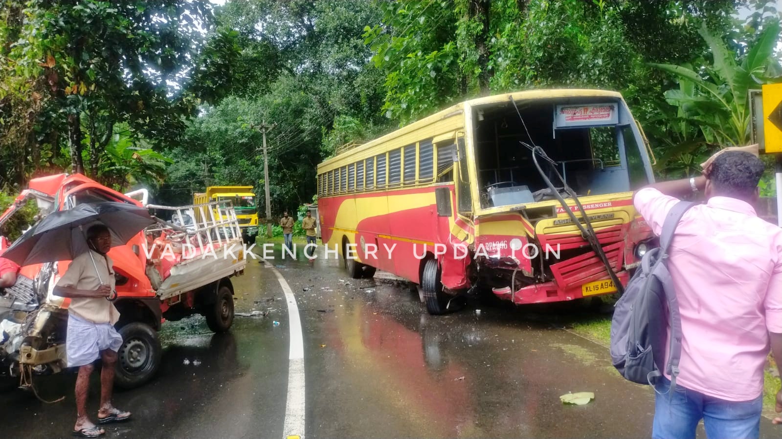 ഈരാറ്റുപേട്ട തൊടുപുഴ റോഡില് കളത്തൂക്കടവിന് സമീപം കെഎസ്ആര്ടിസി ബസും ഗ്യാസ് മിനിലോറിയും കൂട്ടിയിടിച്ച് ലോറി ഡ്രൈവർക്ക് ദാരുണാന്ത്യം.ലോറി ഡ്രൈവർ മേലുകാവ് മറ്റം ഇടമറുക് സ്വദേശി ഏഴുകുംകണ്ടത്തിൽ റിന്സ് (ചാക്കോ -40) ആണ് മരിച്ചത്. മേലുകാവില് നിന്നും ഗ്യാസുമായി വന്ന വാനിലാണ് കെഎസ്ആർടിസി ബസ് ഇടിച്ചത്.വാഹനമോടിച്ചിരുന്ന റിൻസ് ഇടിയുടെ ആഘാതത്തിൽ ലോറിയുടെ ക്യാബിനുള്ളിൽ കുടുങ്ങി പോയി. അപകടത്തിനു പിന്നാലെ റിൻസിനെ പുറത്തിറക്കാൻ നാട്ടുകാർ ശ്രമിച്ചെങ്കിലും സാധിച്ചില്ല. തുടർന്ന് ഫയർ ഫോഴ്സും പൊലീസും സ്ഥലത്തെത്തി വാഹനം വെട്ടിപ്പൊളിച്ചാണ് റിൻസിനെ പുറത്തെടുത്തത്. ലോറിയിൽ നിന്നും പുറത്തെടുത്തപ്പോഴേക്കും റിൻസിന്റെ മരണം സംഭവിച്ചിരുന്നു. മഴയിൽ നനഞ്ഞു കിടന്ന റോഡിൽ തെന്നിയ ലോറി ബസിൽ ഇടിക്കുകയായിരുന്നുവെന്നാണ് പ്രാഥമിക നിഗമനം. പാലക്കാട് വടക്കഞ്ചേരിയിൽ നിന്നുമുള്ള കെഎസ്ആർടിസി ബസുമായാണ് ലോറി കൂട്ടിയിടിച്ചത്. അപകടത്തിൽ ബസ് കണ്ടക്ടർ മംഗലംഡാം സ്വദേശി ബിജു സ്കറിയയ്ക്കും രണ്ട് യാത്രക്കാർക്കും പരിക്കേറ്റിട്ടുണ്ട്.