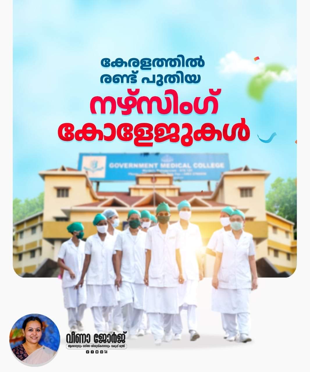 കേരളത്തില് രണ്ട് പുതിയ സര്ക്കാര് നഴ്സിംഗ് കോളേജുകൾ തുടങ്ങുകയാണെന്ന് മന്ത്രി വീണാ ജോർജ്ജ്