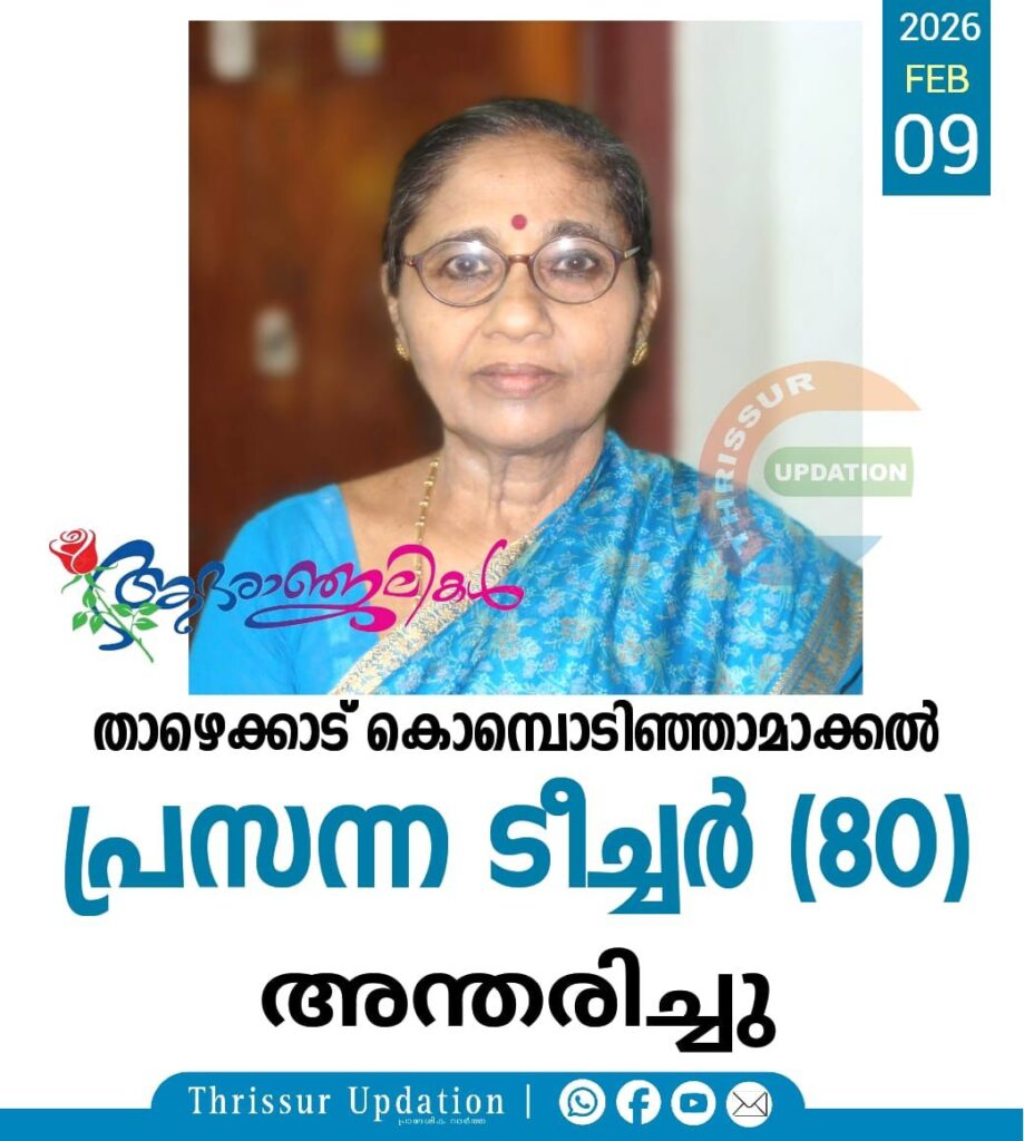 താഴെക്കാട് കൊമ്പൊടിഞ്ഞാമാക്കൽ പ്രസന്ന ടീച്ചർ (80) അന്തരിച്ചു