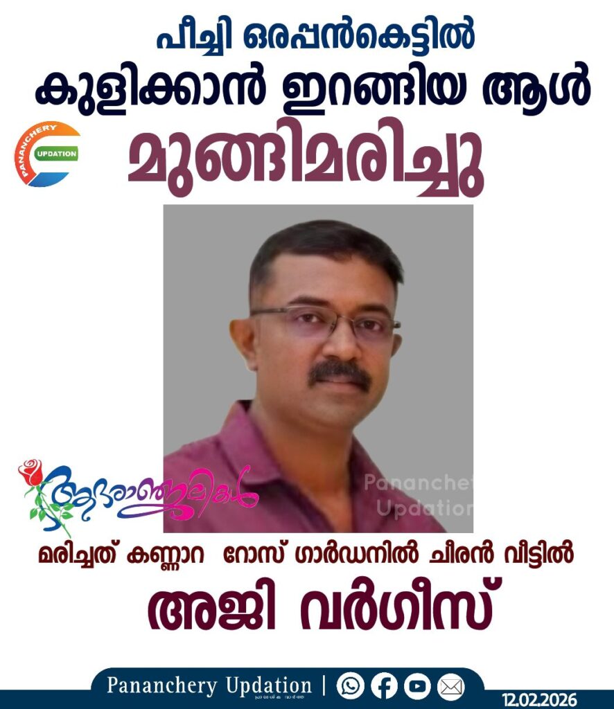 പീച്ചി ഒരപ്പൻകെട്ടിൽ കുളിക്കാൻ ഇറങ്ങിയ ആൾ മുങ്ങിമരിച്ചു