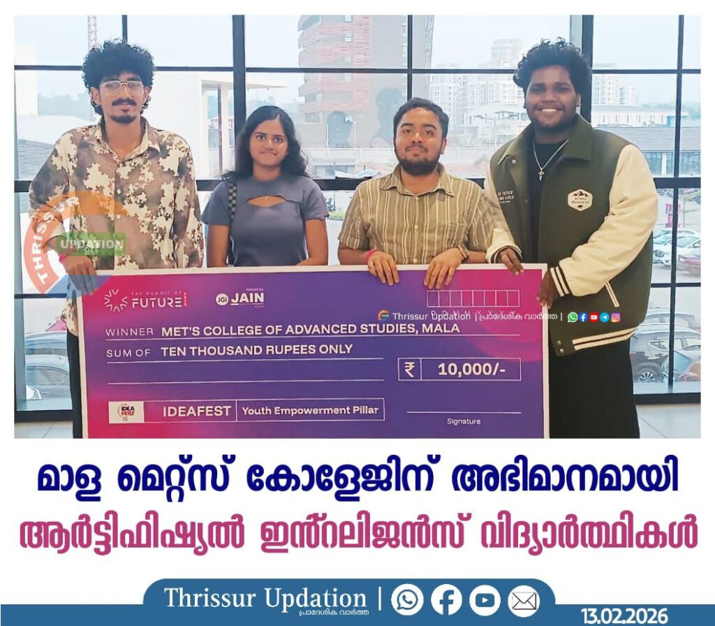 മാള മെറ്റ്സ് കോളേജിന് അഭിമാനമായി ആർട്ടിഫിഷ്യൽ ഇൻ്റലിജൻസ് വിദ്യാർത്ഥികൾ
