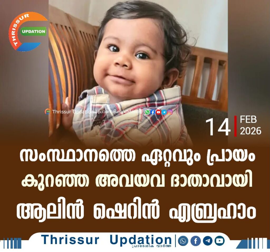 സംസ്ഥാനത്തെ ഏറ്റവും പ്രായം കുറഞ്ഞ അവയവ ദാതാവായി ആലിൻ ഷെറിൻ എബ്രഹാം