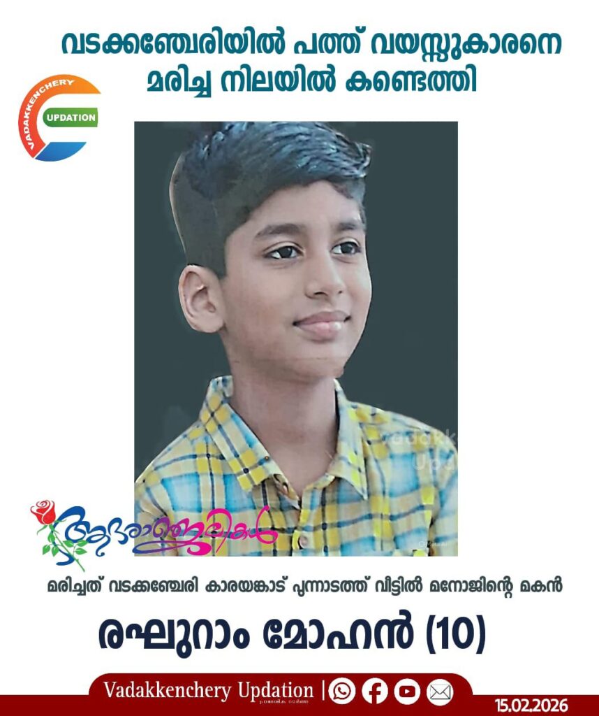 വടക്കഞ്ചേരിയിൽ പത്ത് വയസ്സുകാരൻ മരിച്ച നിലയിൽ കണ്ടെത്തി