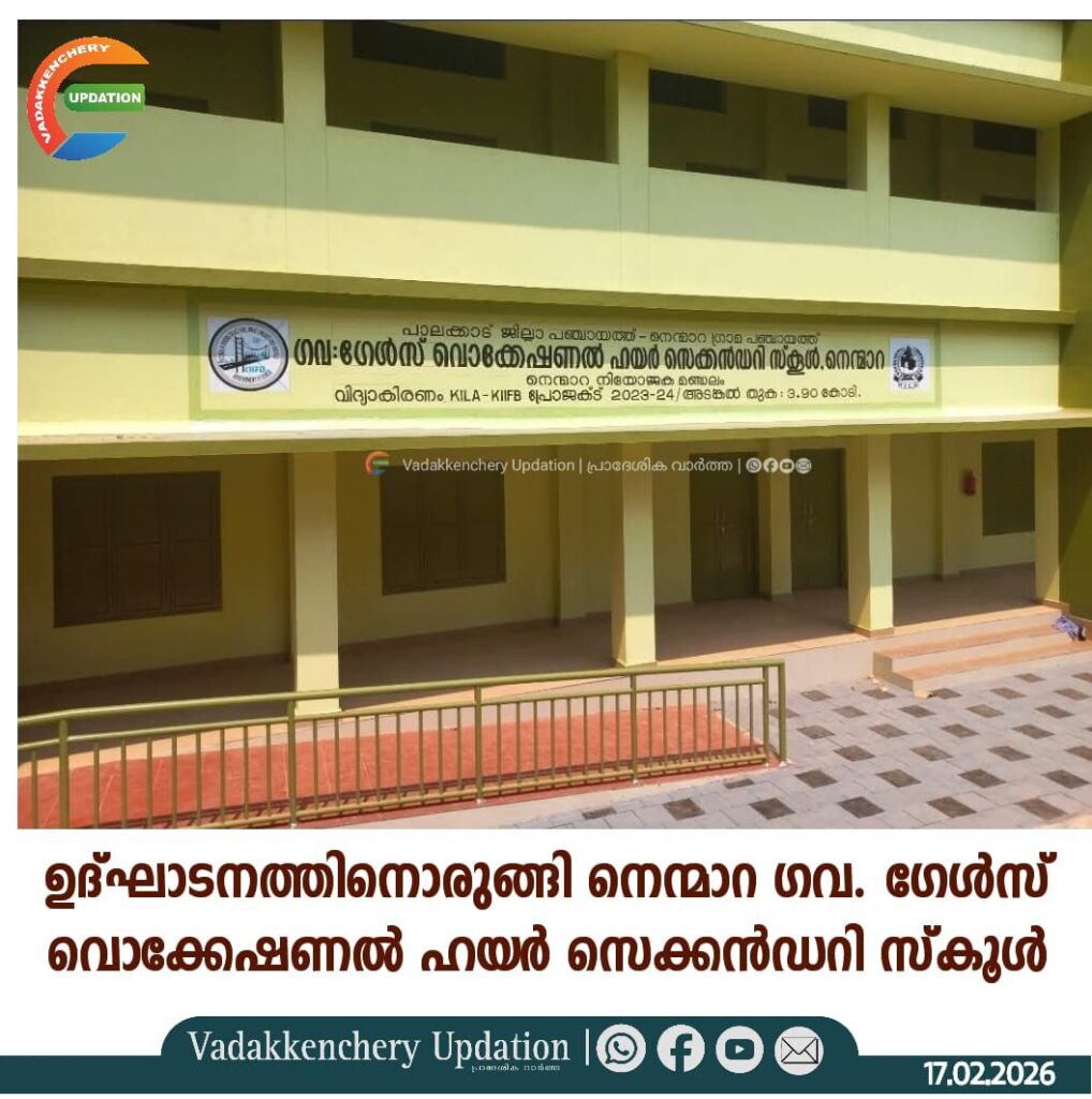 ഉദ്ഘാടനത്തിനൊരുങ്ങി നെന്മാറ ഗവ. ഗേള്സ് വൊക്കേഷണല് ഹയര് സെക്കന്ഡറി സ്കൂള്