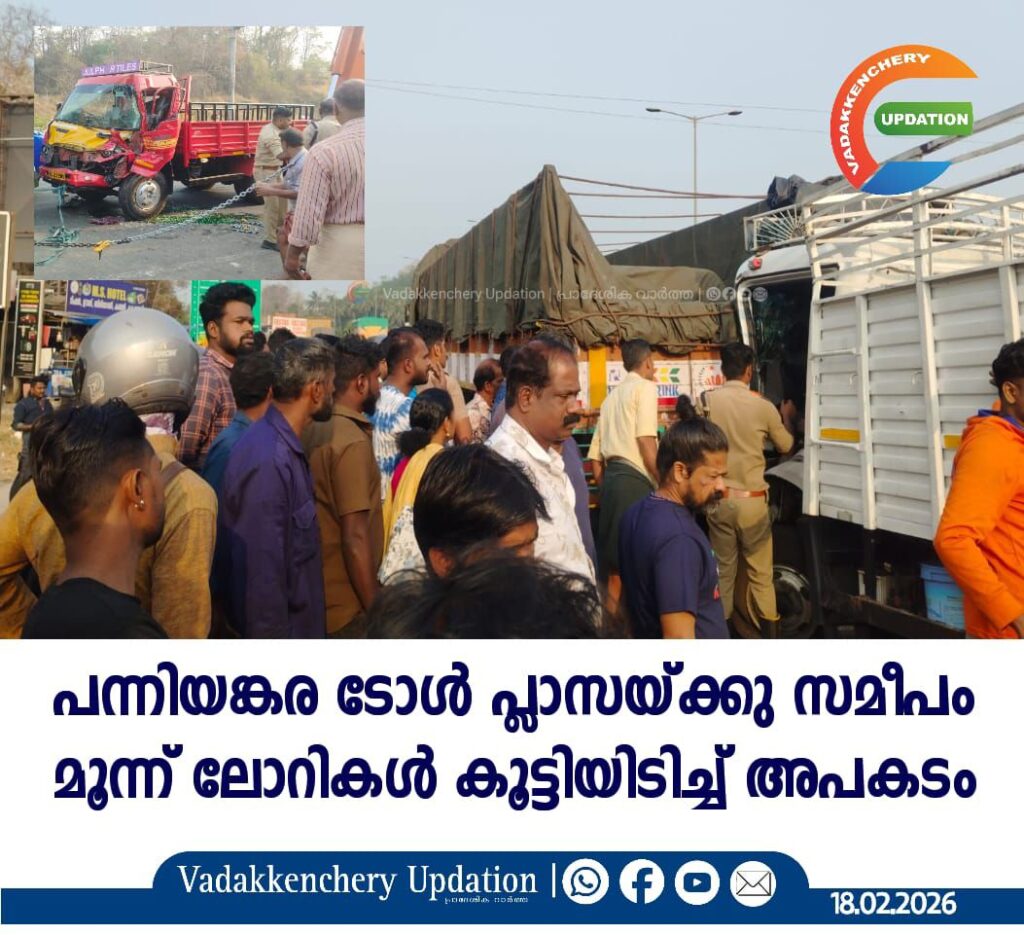 പന്നിയങ്കര ടോൾ പ്ലാസയ്ക്കു സമീപം മൂന്ന് ലോറികൾ കൂട്ടിയിടിച്ച് അപകടം