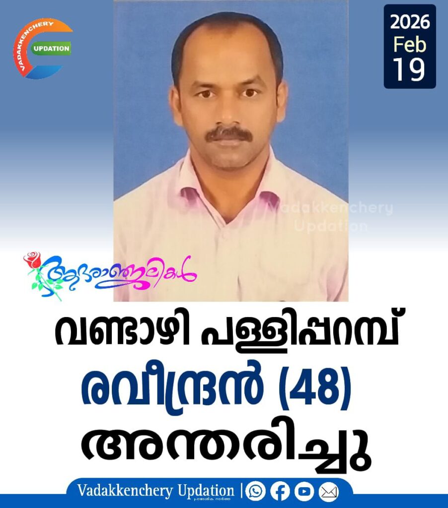 വണ്ടാഴി പള്ളിപ്പറമ്പ് രവീന്ദ്രൻ (48 ) അന്തരിച്ചു. (മണലിപ്പാടം മുടപ്പല്ലൂർ താമസം) സംസ്കാരം ഇന്ന് (19.02.2026- വ്യാഴം) ഉച്ചയ്ക്ക് രണ്ടുമണിക്ക് തിരുവല്വാമല ഐവർമഠത്തിൽ.
