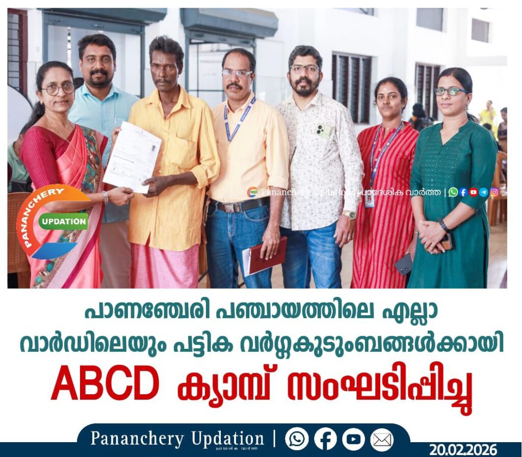 പാണഞ്ചേരി പഞ്ചായത്തിലെ എല്ലാ വാർഡിലെയും പട്ടിക വർഗ്ഗകുടുംബങ്ങൾക്കായി വാണിയംപാറയിൽ വച്ച് നടത്തിയ ABCD ക്യാമ്പ് പാണഞ്ചേരി പഞ്ചായത്ത് പ്രസിഡൻ്റ് മിനു വർഗീസ് ഉദ്ഘാടനം ചെയ്തു .വാർഡ് മെമ്പർ ആയ സനലിന്റെ അധ്യക്ഷതയിൽ ചേർന്ന യോഗത്തിൽ വാർഡ് മെമ്പർമാരായ ജിജി , കൃപ, പഞ്ചായത്ത് അസിസ്റ്റൻറ് സെക്രട്ടറി അരുൺ, TDO .ശശി എന്നിവർ സംസാരിച്ചു
