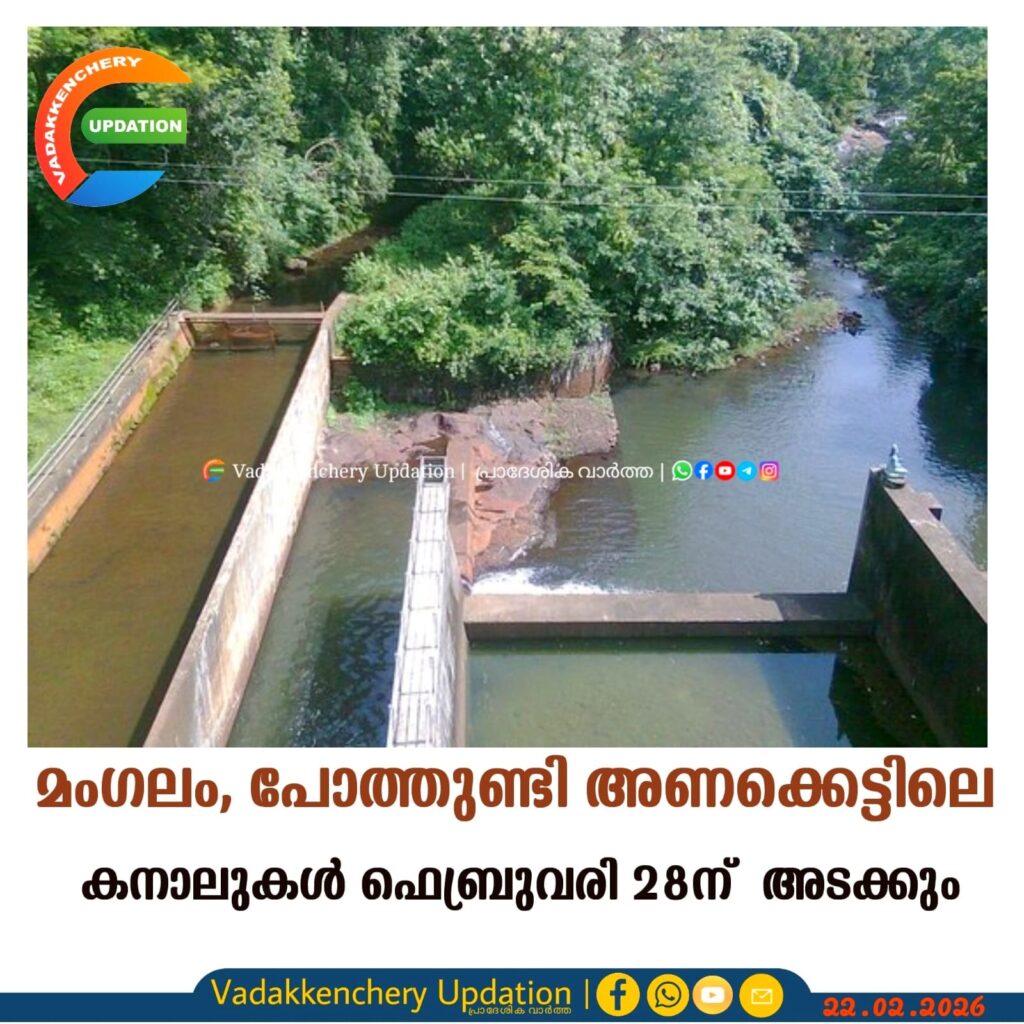മംഗലം, പോത്തുണ്ടി അണക്കെട്ടിലെ കനാലുകള് ഫെബ്രുവരി 28ന് അടക്കും