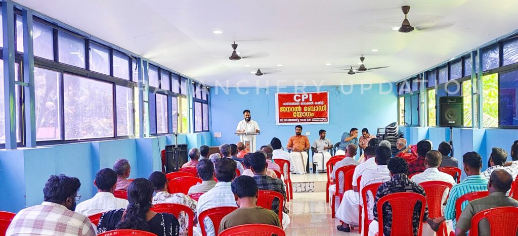 സിപിഐ പാണഞ്ചേരി ലോക്കൽ കമ്മിറ്റി ജനറൽ ബോഡി യോഗം പട്ടിക്കാട് വെച്ച് ചേർന്നു. സിപിഐ ഒല്ലൂർ മണ്ഡലം സെക്രട്ടറി പിഡി റെജി യോഗം ഉദ്ഘാടനം നിർവഹിച്ചു ലോക്കൽ സെക്രട്ടറി സനിൽ വാണിയംപാറ അധ്യക്ഷത വഹിച്ചു മണ്ഡലം സെക്രട്ടറിയേറ്റ് അംഗം കെ എ അബൂബക്കർ,ലോക്കൽ അസിസ്റ്റന്റ് സെക്രട്ടറി ജിനേഷ് പിച്ചി, മണ്ഡലം കമ്മിറ്റി അംഗം എം കെ പ്രദീപ് കുമാർ തുടങ്ങിയവർ സംസാരിച്ചു