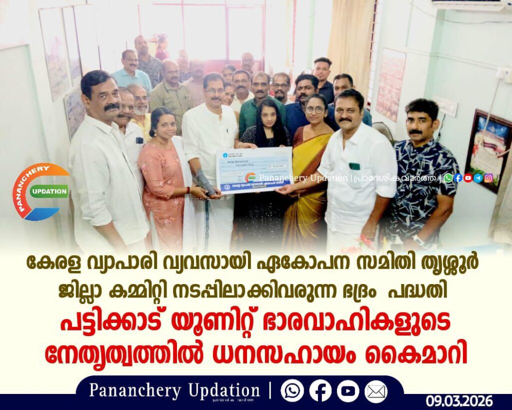 കേരള വ്യാപാരി വ്യവസായി ഏകോപനസമിതി തൃശ്ശൂർ ജില്ലാ കമ്മിറ്റി നടപ്പിലാക്കിവരുന്ന ഭദ്രം കുടുംബ സുരക്ഷ പദ്ധതിയിൽ അംഗമായിട്ടുള്ള പട്ടിക്കാട് യൂണിറ്റ് മെമ്പർ കുട്ടി മുഹമ്മദിൻറെ നിര്യാണത്തെ തുടർന്ന് പട്ടിക്കാട് യൂണിറ്റ് ഭാരവാഹികളുടെ നേതൃത്വത്തിൽ നടന്ന ചടങ്ങിൽ അദ്ദേഹത്തിൻറെ കുടുംബത്തിന് 10 ലക്ഷം രൂപ മരണാനന്തര ധനസഹായ വിതരണം യൂണിറ്റ് പ്രസിഡൻ്റ് ജോബി പറപ്പുള്ളിയുടെ അധ്യക്ഷതയിൽ കൂടിയ യോഗത്തിൽ തൃശ്ശൂർ ജില്ല സെക്രട്ടറിയും ഒല്ലൂർ നിയോജകമണ്ഡലം ചെയർമാനുമായ ബിജു എടക്കളത്തൂർ ഉദ്ഘാടന കർമ്മം നിർവഹിച്ചു.