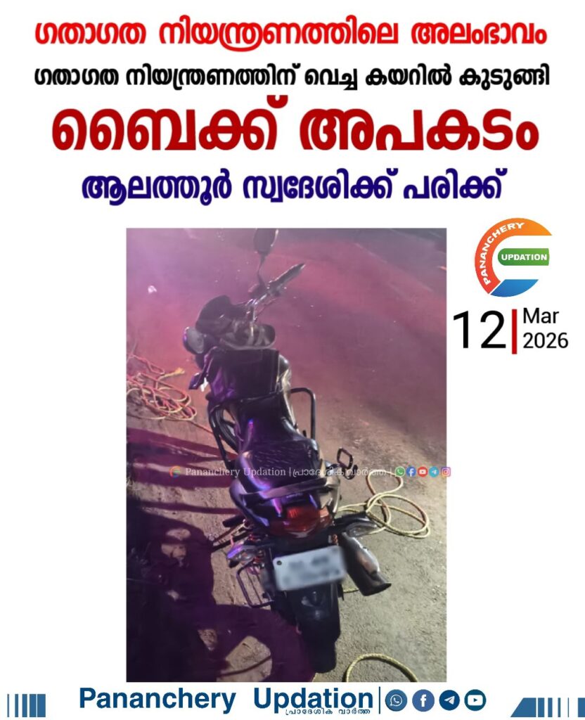 ദേശീയപാത വാണിയംപാറ പാൽ സൊസൈറ്റിക്ക് സമീപം ബൈക്ക് അപകടത്തിൽപ്പെട്ട് ഒരാൾക്ക് പരിക്കേറ്റു. ആലത്തൂർ സ്വദേശി ജലീൽ (49) നാണ് പരിക്കേറ്റത്. സാരമായി പരിക്കേറ്റ ജലീലിനെ വാണിയംപാറയിലെ 108 ആംബുലൻസിൽ ആലത്തൂരിലെ സ്വകാര്യ ആശുപത്രിയിൽ പ്രവേശിപ്പിച്ചു. ഇന്ന് പുലർച്ചെ ആണ് അപകടം ഉണ്ടായത്. തൃശ്ശൂർ ഭാഗത്തേക്കുള്ള പാതയിൽ ഗതാഗത നിയന്ത്രണത്തിനായി ഉപയോഗിച്ചിട്ടുള്ള കയറിൽ കുരുങ്ങിയ നിലയിൽ ആയിരുന്നു ബൈക്ക്. പിന്നാലെ എത്തിയ ലോറി ഡ്രൈവർ ആണ് ബൈക്ക് അപകടത്തിൽപ്പെട്ട് കിടക്കുന്നത് കണ്ടത്. ഗതാഗത നിയന്ത്രണം ഏർപ്പെടുത്തിയ ദിവസം മുതൽ പ്രദേശവാസികളും ജനകീയ കൂട്ടായ്മകളും ജനപ്രതിനിധികളും ആവശ്യപ്പെടുന്നതാണ് നിലവിലെ സർവീസ് റോഡ് ടാർ ചെയ്ത് വീതി വരുത്തി അതിലൂടെ വാഹനങ്ങൾ കടത്തിവിടണമെന്ന്. നിർമ്മാണ കമ്പനിയായ PST ഈ രീതിയിലുള്ള നടപടികൾ സ്വീകരിച്ചിരുന്നില്ല. അതുകൊണ്ടാണ് ഇങ്ങനെയുള്ള അപകടങ്ങൾ വർധിച്ചുവരുന്നത്