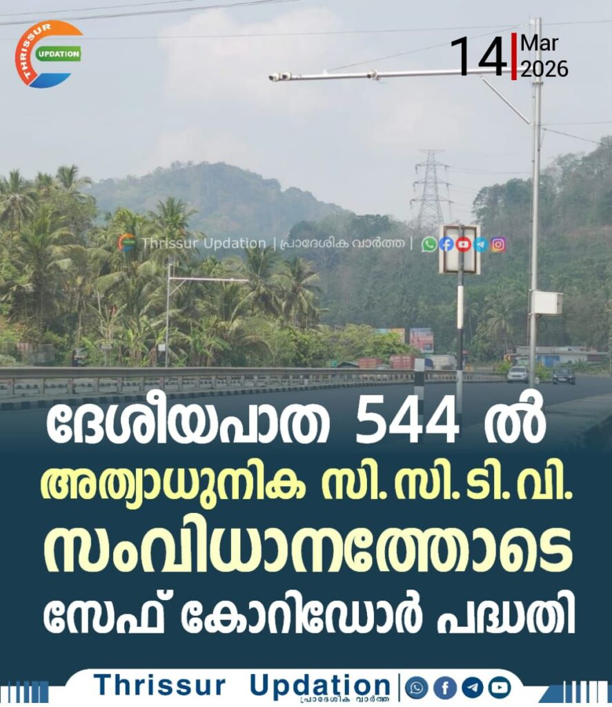 തൃശ്ശൂർ ദേശീയപാത 544-ൽ വാണിയമ്പാറ മുതൽ പാലിയേക്കര വരെയുള്ള 32.5 കിലോമീറ്ററിൽ സേഫ് കോറിഡോർ പദ്ധതിക്ക് ശനിയാഴ്ച തുടക്കമാകും. സംസ്ഥാനത്താദ്യമായാണ് അത്യാധുനി കശേഷിയുള്ള സി.സി.ടി.വി. നിരീക്ഷണ സംവിധാനമടക്കമുള്ള പദ്ധതി നടപ്പാക്കുന്നത്. ഇതിൻ്റെ സ്വിച്ച് ഓണും പ്രവർത്തനോദ്ഘാടനവും നടത്തറ സിഗ്നൽ പരിസരത്ത് മന്ത്രി കെ. രാജൻ നിർവഹിക്കും.