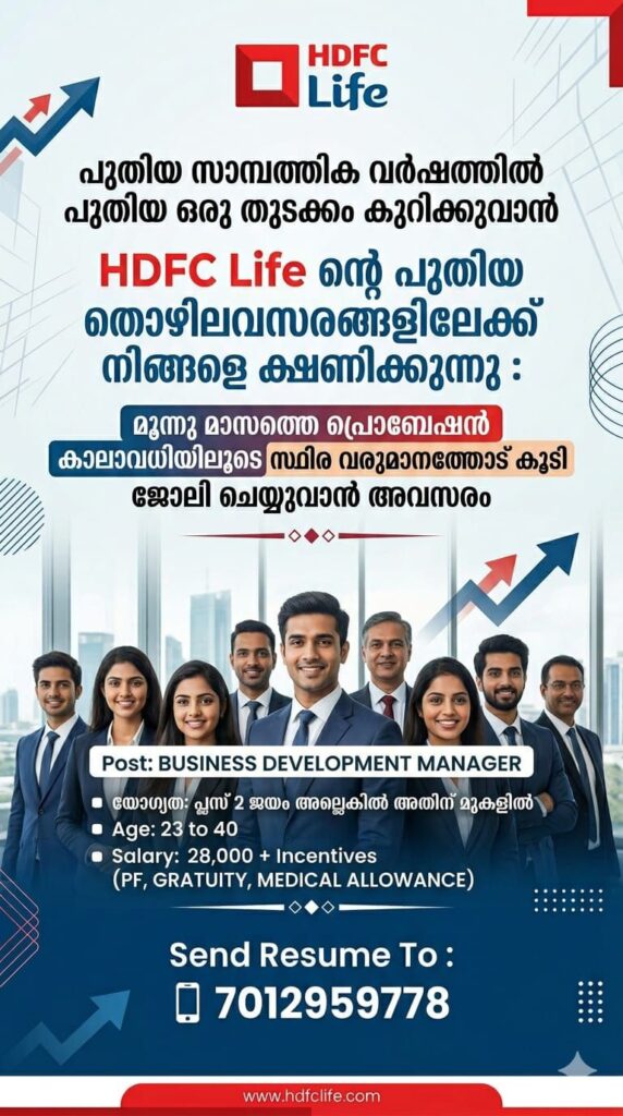 HDFC Life ന്റെ പുതിയ തൊഴിലവസരങ്ങളിലേക്ക് നിങ്ങളെ ക്ഷണിക്കുന്നു :