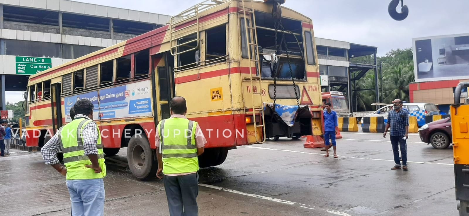പന്നിയങ്കര ടോൾ പ്ലാസയിലേക്ക് KSRTC ഇടിച്ച് കയറി നിരവധി പേർക്ക് പരിക്ക് .തൃശ്ശൂർ ഭാഗത്ത് നിന്ന് കൊയമ്പത്തൂരിലേക്ക് പോകുന്ന KSRTC ആണ് അപകടത്തിൽ പെട്ടത് കുറച്ച് പേരെ 108 ആംബുലൻസിൽ തൃശ്ശൂർ മെഡിക്കൽ കോളേജിലേക്ക് കൊണ്ട് പോയി. ടോൾ പ്ലാസയുടെ മുമ്പിലെ ഡിവൈഡറിലേക്കാണ് ഇടിച്ച് കയറിയത് കൂടുതൽ വിവരങ്ങൾ ലഭ്യമായിട്ടില്ല.