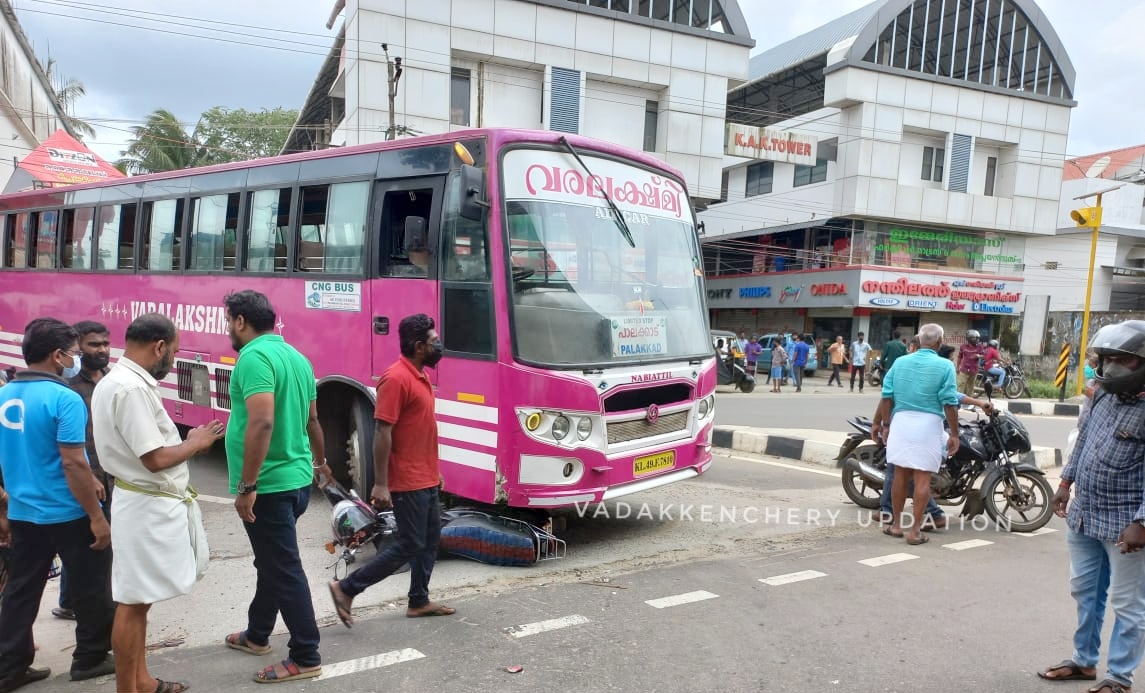 വടക്കഞ്ചേരിയിൽ ബസ്സ് ബൈക്കിൽ ഇടിച്ച് ബൈക്ക് യാത്രക്കാരന് പരുക്ക്