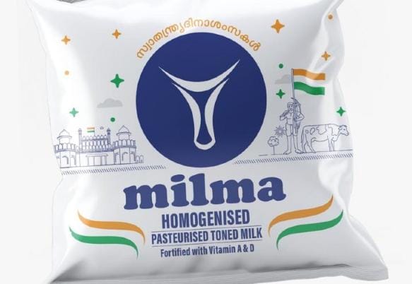 രാജ്യത്തിന്റെ എഴുപത്തിയഞ്ചാം സ്വാതന്ത്ര്യ വാര്ഷികത്തില് ത്രിവര്ണ പതാകയുടെ പൊലിമ മില്മ പാലിന്റെ കവറിലും. സംസ്ഥാനത്തെ മില്മയുടെ 525 മില്ലി ഹോമോജ്നൈസ്ഡ് ടോണ്ഡ് മില്ക്കിന്റെ കവറിലാണ് ത്രിവര്ണ പതാക ആലേഖനം ചെയ്യുന്നത്. ഇന്ന് 13.08.2022മുതല് 16.08.2022 വരെ പുറത്തിറങ്ങുന്ന പാലിന്റെ കവറുകള് പതാകയും ത്രിവര്ണവും പതിച്ചവയായിരിക്കും.