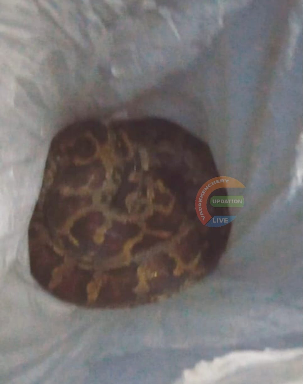 പുതുക്കോട്: പൊതുപ്രവർത്തകനായ സുരേഷ് വേലായുധന്റെ പുതുക്കോടുള്ള വീട്ടുവളപ്പിൽ നിന്ന് 16.8 കിലോ തൂക്കം വരുന്ന പെരുമ്പാമ്പിനെ പിടികൂടി വനംവകുപ്പിന് കൈമാറി. പറമ്പിലെ കാട് വെട്ടിത്തെളിയ്ക്കുന്നതിനിടെ തൊഴിലാളി സ്ത്രീയാണ് മരംമുറിച്ച കുഴിയിൽ ചുരുണ്ടുകിടക്കുന്ന പെരുമ്പാമ്പിനെ ആദ്യം കണ്ടത്. തുടർന്ന് വാർഡ് മെമ്പർ ബിനീഷ് ഉൾപ്പടെ നിരവധിയാളുകൾ സംഭവസ്ഥലത്ത് തടിച്ചുകൂടി. ബിനീഷ് വനംവകുപ്പിനെ വിവരമറിയിച്ചു.