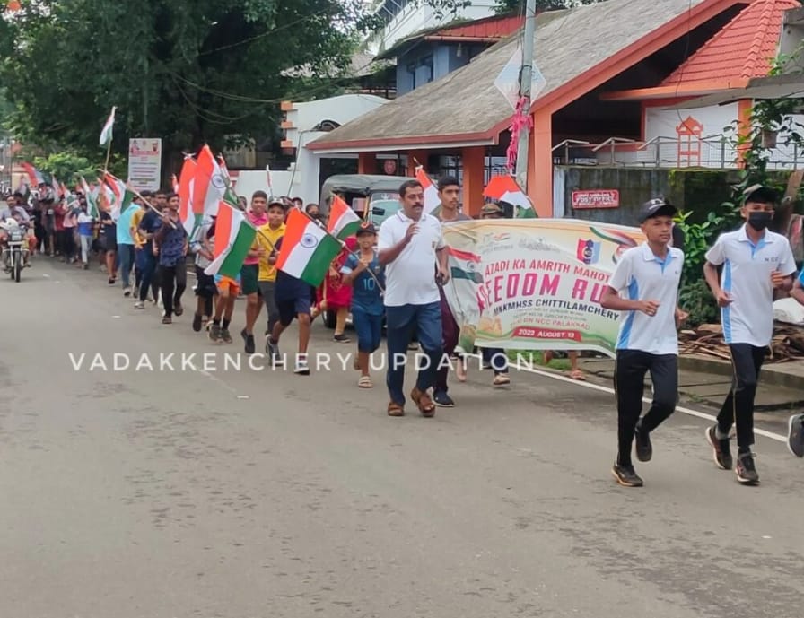 ചിറ്റിലംചേരി എം.എൻ.കെ.എം.എച്ച്.എസ്.എസ് എൻ.സി.സി വനിതാ പുരുഷ ക്യാഡറ്റുകൾ ഫ്രീഡം റൺ നടത്തി. 100 ഓളം ക്യാഡറ്റുകൾ പങ്കെടുത്ത ചടങ്ങിൽ എം.എൻ.കെ.എം.എച്ച്.എസ്.എസ് കായിക അധ്യാപകൻ കെ.പോൾ വർഗീസ് റൺ ഫ്ലാഗ് ഓഫ് ചെയ്തു. എൻ.സി.സി ഓഫീസർ ഡെയ്സി, മുഹമ്മദ് മുസ്തഫെയിൽ എന്നിവർ നേതൃത്വം നൽകി. അധ്യാപകരായ സിജോ ജോൺ, സുഭാഷ് മോൻ , റംലത്ത്, സുധ എന്നിവർ ആശംസയും . സ്റ്റാഫ് സെക്രട്ടറി എം. രതീഷ് നന്ദിയും പറഞ്ഞു.