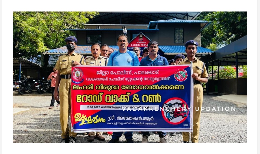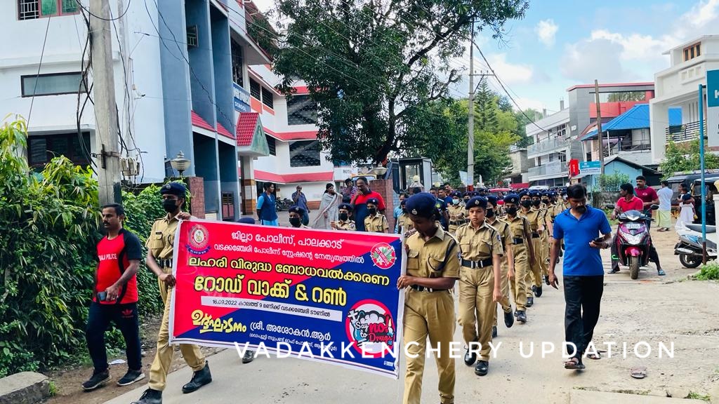 വടക്കഞ്ചേരി പോലീസ് സ്റ്റേഷന്റെ നേതൃത്വത്തിൽ ലഹരിവിരുദ്ധ ബോധവൽക്കരണ റോഡ് വാക്ക് സംഘടിപ്പിച്ചു