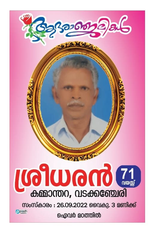 വടക്കേഞ്ചേരി കമ്മാന്തറ ശ്രീധരൻ(71) അന്തരിച്ചു .