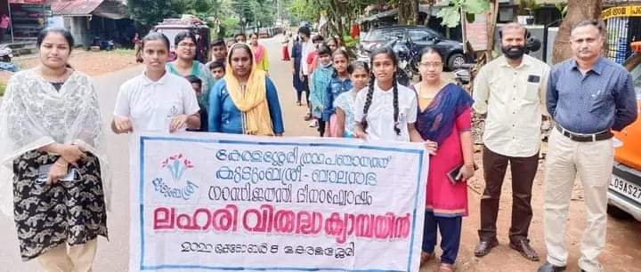 കേരളശ്ശേരി ഗ്രാമപഞ്ചായത്തിന്റെയും കുടുംബശ്രീ സി.ഡി.എസ് ഭരണസമിതിയുടെയും സംയുക്താഭിമുഖ്യത്തില് ബാലസഭ കുട്ടികളെ ഉള്പ്പെടുത്തി ലഹരി വിമുക്ത റാലിയും ലഹരി ഉപയോഗം കുറയ്ക്കുന്നതിനായുള്ള ബോധവത്ക്കരണ ക്ലാസും സംഘടിപ്പിച്ചു. പരിപാടിയുടെ ഉദ്ഘാടനം പഞ്ചായത്ത് പ്രസിഡന്റ് കെ. ഷീബ സുനില് നിര്വഹിച്ചു. വിദ്യാര്ത്ഥികള്ക്കിടയിലും സമൂഹത്തിലും ലഹരിവിരുദ്ധ സന്ദേശമെത്തിക്കുന്നതിന്റെ ഭാഗമായാണ് വിദ്യാര്ത്ഥികളുടെ റാലിയടക്കം സംഘടിപ്പിച്ചതെന്നും സ്കൂള്തലത്തില് ഇതിനായി ജനജാഗ്രത സമിതികള് രൂപീകരിച്ചതായും അധികൃതര് പറഞ്ഞു. തുടര്ന്ന് ലഹരി വിമുക്ത പ്രതിജ്ഞയും ഹെല്ത്ത് ഇന്സ്പെക്ടര് സാജന് പദ്ധതി വിശദീകരണവും നടത്തി.