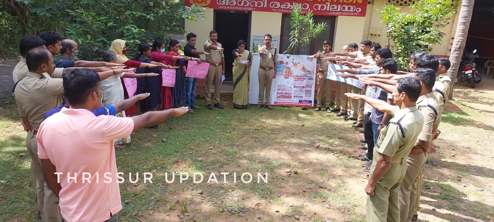 കേരള സംസ്ഥാന സർക്കാരും കേരള ഫയർ ആൻഡ് റെസ്ക്യൂ സർവീസസും സംയുക്തമായി നടത്തുന്ന ലഹരി വിരുദ്ധ ക്യാമ്പയിൻ ആയ” ലഹരിക്കെതിരെ നവകേരള മുന്നേറ്റം ” എന്ന പരിപാടി കേരള ഫയർ സർവീസ് അസോസിയേഷന്റെ നേതൃത്വത്തിൽ വടക്കഞ്ചേരി നിലയത്തിൽ വച്ച് സംഘടിപ്പിച്ചു. വടക്കഞ്ചേരി ഗ്രാമപഞ്ചായത്ത് പ്രസിഡന്റ് ലിസി സുരേഷ് ലഹരി വിരുദ്ധ പ്രതിജ്ഞ ചൊല്ലി കൊടുത്തുകൊണ്ട് പരിപാടി ഉദ്ഘാടനം ചെയ്തു.സീനിയർ ഫയർ ആൻഡ് റെസ്ക്യൂ ഓഫീസർ ശിവൻ.കെ അധ്യക്ഷത വഹിച്ച ചടങ്ങിൽ മേഖല പ്രസിഡണ്ട് ഗോപാലകൃഷ്ണൻ സ്വാഗതവും മേഖലാ ട്രഷറർ സജിത്ത്.ടി.സി, മേഖലാ ജോയിന്റ് സെക്രട്ടറി ഗിരീഷ്. കെ അഭിസംബോധനയും വടക്കഞ്ചേരി യൂണിറ്റ് ലോക്കൽ കൺവീനർ ശ്രീഹരി നന്ദിയും പറഞ്ഞു. ജീവനക്കാരും സുഹൃത്തുക്കളും കുടുംബാംഗങ്ങളും നിലയ പരിസരവാസികളും ലഹരി വിരുദ്ധ ക്യാമ്പയിനിൽ പങ്കെടുത്തു.