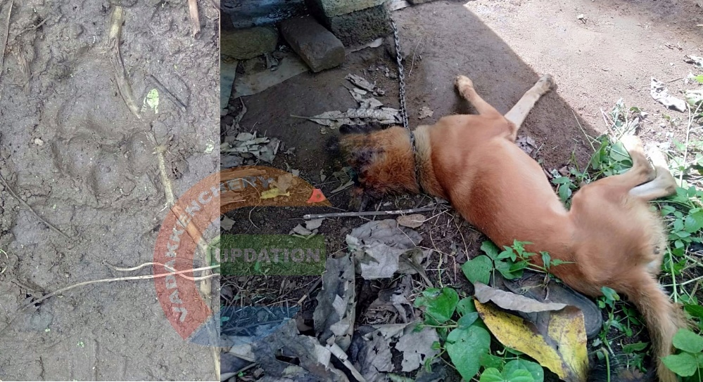 വടക്കഞ്ചേരി കണക്കൻ തുരുത്തിയിൽ ചക്കുണ്ടിൽ എഴുത്തച്ഛൻ വീട്ടിൽ മോഹനന്റെ വീട്ടിലാണ് പട്ടിയുടെ മുഖം കടിച്ച് ഇട്ടിരിക്കുന്നത് . ഫോറസ്റ്റിനെയും പോലീസിനെയും വീട്ടുകാർ വിവരം അറിയിച്ചിട്ടുണ്ട്. വീട്ടുകാരും നാട്ടുകാരും ഭീതിയിലാണ്