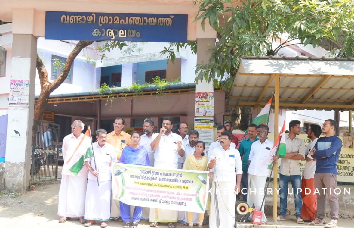 വണ്ടാഴി ഗ്രാമ പഞ്ചായത്തിൽ തെരുവ് വിളക്കുകൾ കത്തുന്നില്ല ; യുഡിഎഫ് മെമ്പർമാർ പഞ്ചായത്തിനുമുൻപിൽ പ്രതിക്ഷേധ സൂചകമായി ബൾബുകൾ കത്തിച്ച് ധർണ്ണ നടത്തി