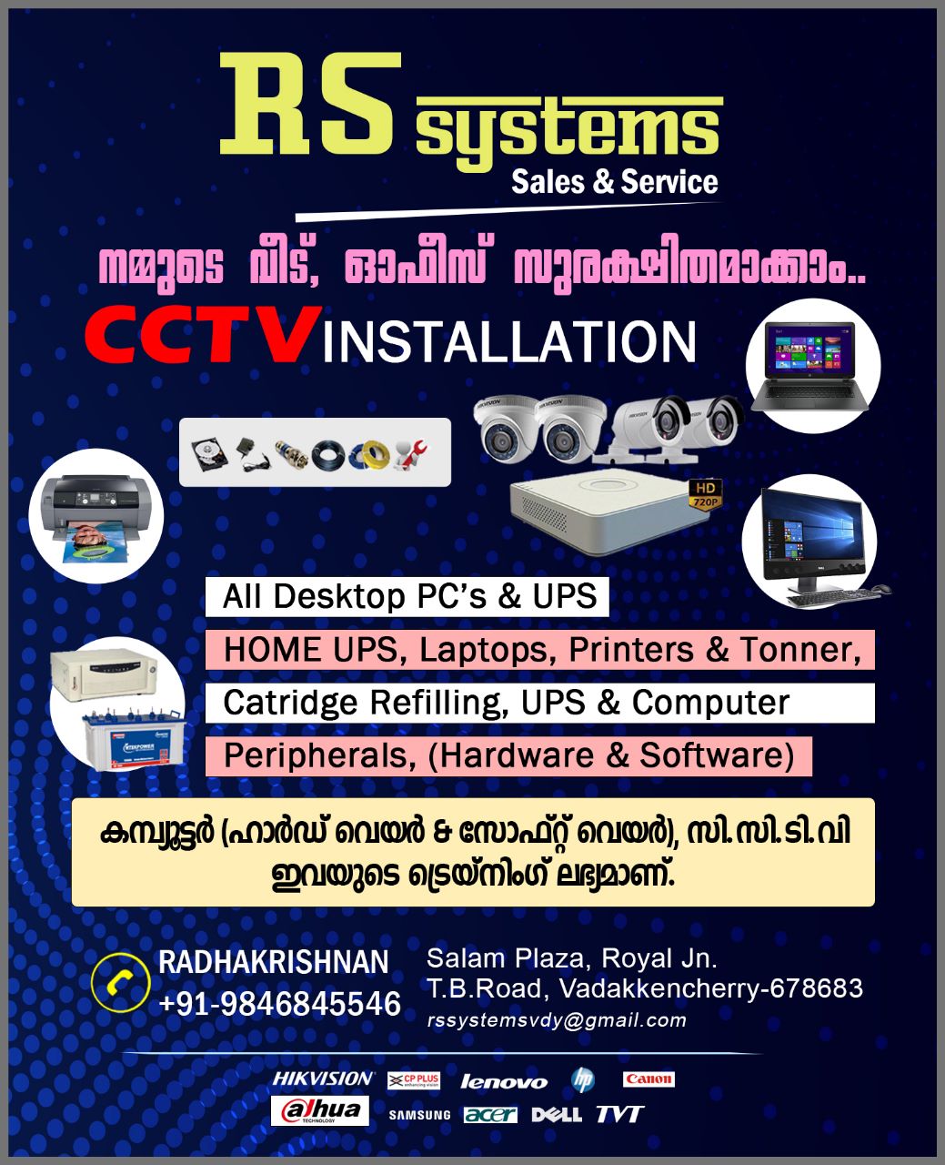 📖കൂടാതെ, കമ്പ്യൂട്ടർ (ഹാർഡ് വെയർ, സോഫ്റ്റ് വെയർ), സി.സി.ടി.വി എന്നിവയുടെ ട്രെയ്നിംഗ് നൽകുന്നു.