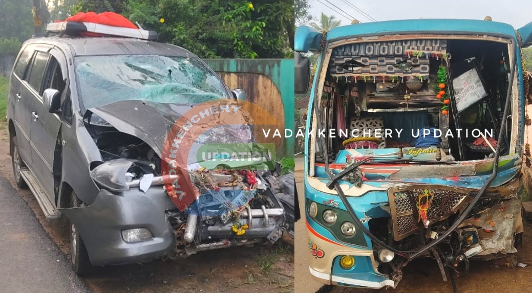 പുലർച്ചെ മംഗലം പൊള്ളാച്ചി ദേശീയപാതയിൽ കല്ലത്താണിയിൽ വെച്ച് ദർശനം കഴിഞ്ഞു പോകുന്ന മിനി ബസ്സും ശബരിമലയിലേക്ക് പോകുന്ന ഇന്നോവയും തമ്മിൽ കൂട്ടിയിടിച്ച് അയ്യപ്പഭക്തന്മാർക്ക് പരിക്ക്. ഇന്ന് കാലത്ത് നാലരയോട് കൂടിയാണ് അപകടം ഉണ്ടായത്. പരിക്കു പറ്റിയ പന്ത്രണ്ടോളം അയ്യപ്പഭക്തന്മാർ നെമ്മാറ അവറ്റീസ് ആശുപത്രിയിൽ പ്രവേശിപ്പിച്ചു. ഇന്നോവയിൽ 12 പേരും മിനി ബസിൽ 11 പേരുമാണ് ഉണ്ടായിരുന്നത്.